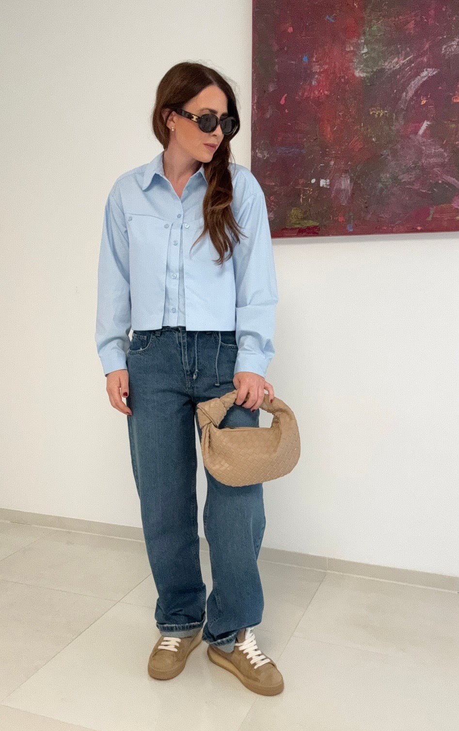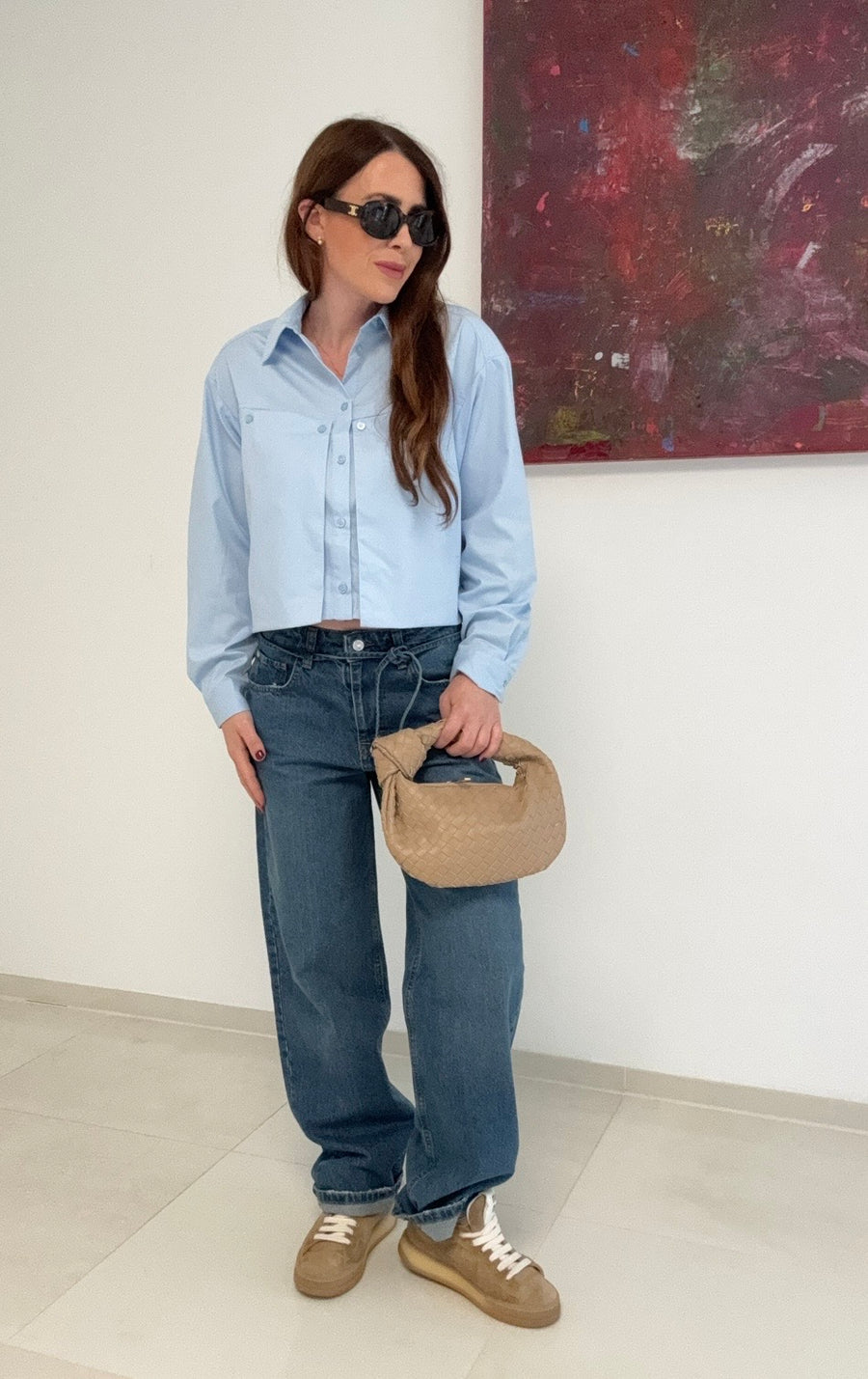 Verkürzte Bluse - Hellblau