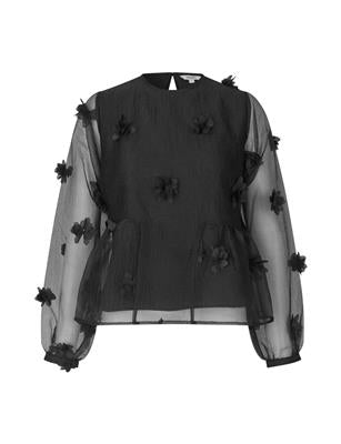 Diese verspielte Bluse in Schwarz besticht durch ihre transparenten Ärmel, die einen eleganten und modernen Look verleihen. Sie sitzt größengerecht und sorgt für einen angenehmen Tragekomfort. Hergestellt aus 100% Polyester, ist die Bluse leicht und pflegeleicht. Die abgebildete Person trägt Größe S bei 164 cm und zeigt, wie perfekt die Passform dieser Bluse zum Alltag und besonderen Anlässen passt. Ein stilvoller Begleiter, der jedes Outfit aufwertet.