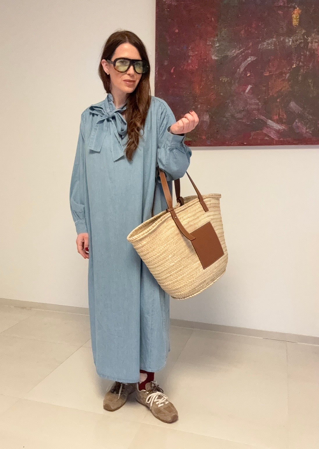 Elegantes Maxi-Jeanskleid aus 100% Baumwolle mit seitlichen Schlitzen für zusätzliche Bewegungsfreiheit. Das leichte, angenehm zu tragende Material macht es zur perfekten Wahl für warme Tage. Die abnehmbare Schleife ermöglicht flexible Styling-Optionen. Die Einheitsgröße passt Größen 34-44. Modell 164 cm trägt Größe S. Ein vielseitiges Kleidungsstück, das Komfort und zeitlose Eleganz vereint.