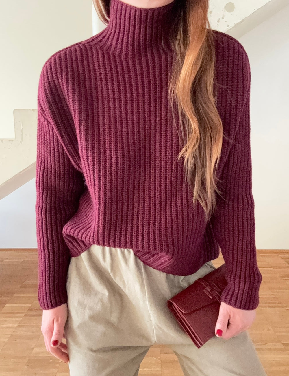 Dieser grob gestrickte Pullover in tollem Burgunder überzeugt durch seinen angenehmen Tragekomfort und die weiche Materialmischung aus Viskose, Polyester und Polyamid. Der gerade Schnitt mit Rollkragen und die leicht verkürzte Länge sorgen für einen modernen Look, der sich ideal von Größe 34 bis 40 anpasst. Mit einer Brustweite von 59-60 cm und einer Gesamtlänge von 49-50 cm ist dieser Pullover vielseitig kombinierbar und ein echter Hingucker für kühle Tage. Perfekt für stilbewusste Frauen, die Komfort und Design schätzen.