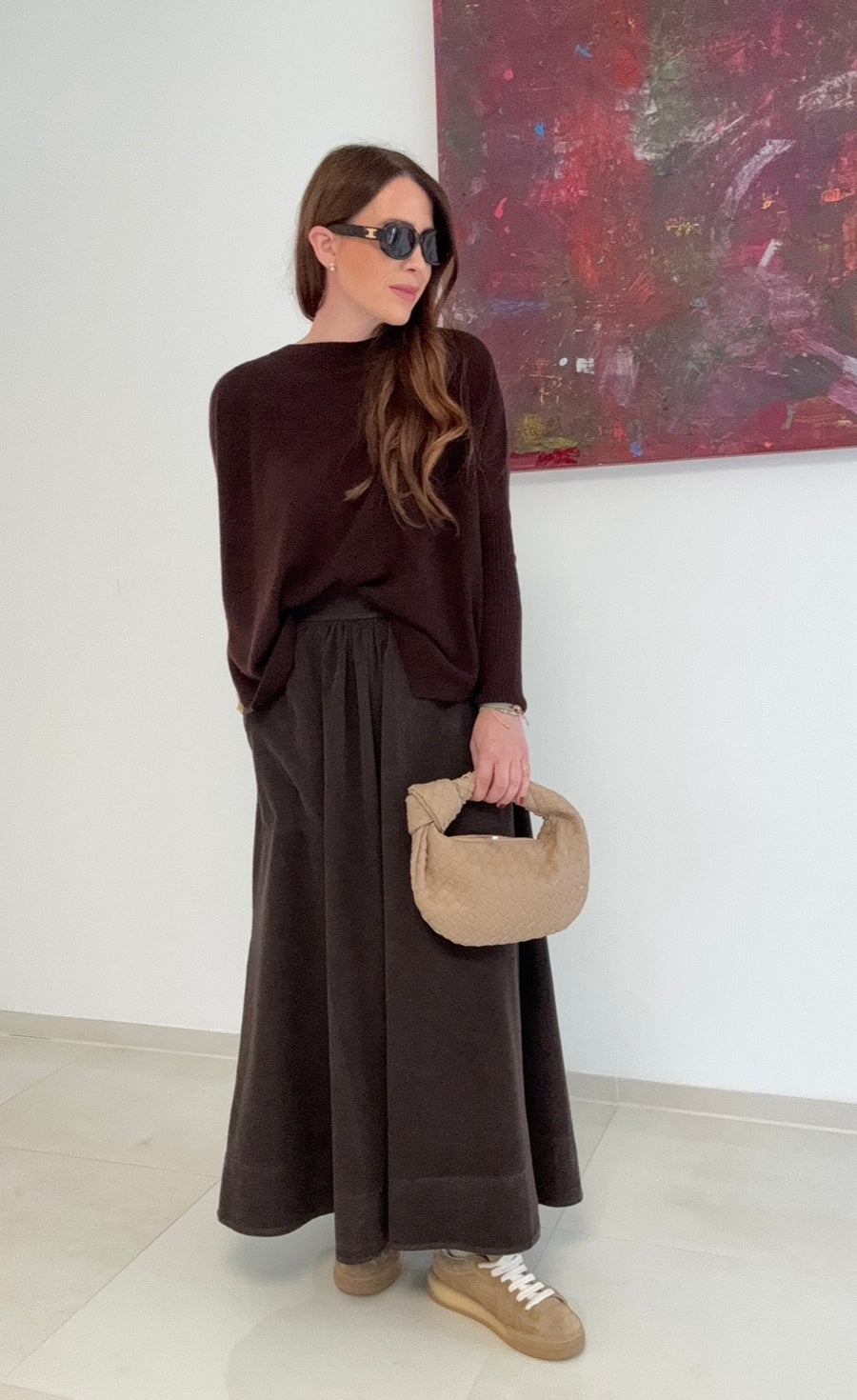 Dieser Cordrock in schokoladenbraun vereint Komfort und Stil dank des elastischen Bunds, der sich flexibel an Größen 34 bis 42 anpasst. Aus 100% Baumwolle gefertigt, bietet er ein angenehmes Tragegefühl. Praktische Schubtaschen runden das Design funktional ab. Ideal für Frauen, die Alltagstauglichkeit mit einem modernen Look verbinden möchten. Das Modell auf dem Bild ist 164 cm groß und trägt Größe S.