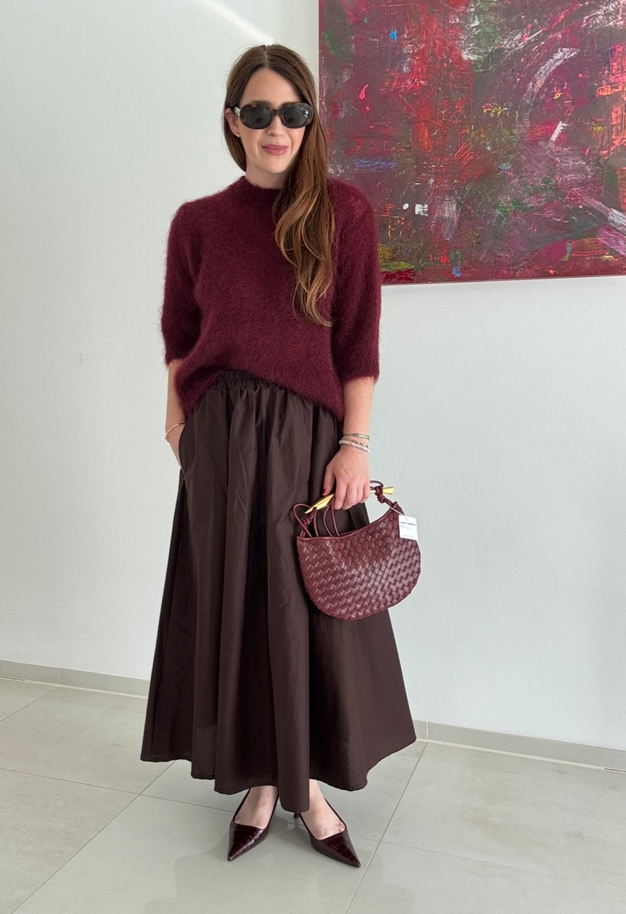 Dieser braune Rock besteht aus 100% Baumwolle und verfügt über einen bequemen Gummibund. Der Rock ist sowohl für Personen mit Größe 34 als auch 42 tragbar. Perfekt für einen lässigen, aber dennoch stilvollen Look.