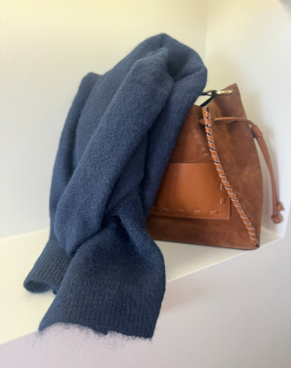 Dieser weiche Schal in Navy überzeugt durch seine hochwertige Materialmischung aus 8 % Wolle, recyceltem Polyester sowie Nylon und Elastan, die für angenehmen Tragekomfort und langlebige Qualität sorgt. Mit einer Breite von 35–40 cm und einer Länge von 190 cm bietet er vielseitige Stylingmöglichkeiten und wärmt an kühlen Tagen zuverlässig. Ein stilvolles Accessoire, das Komfort und Nachhaltigkeit vereint.