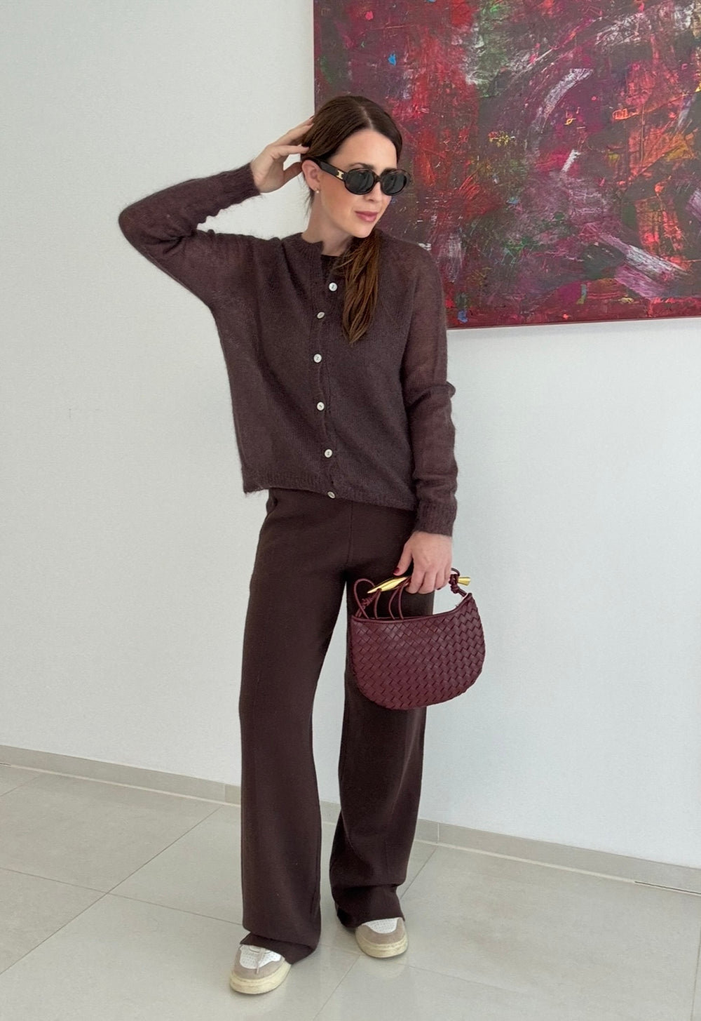Dünne Mohair-Strickjacke - Braun