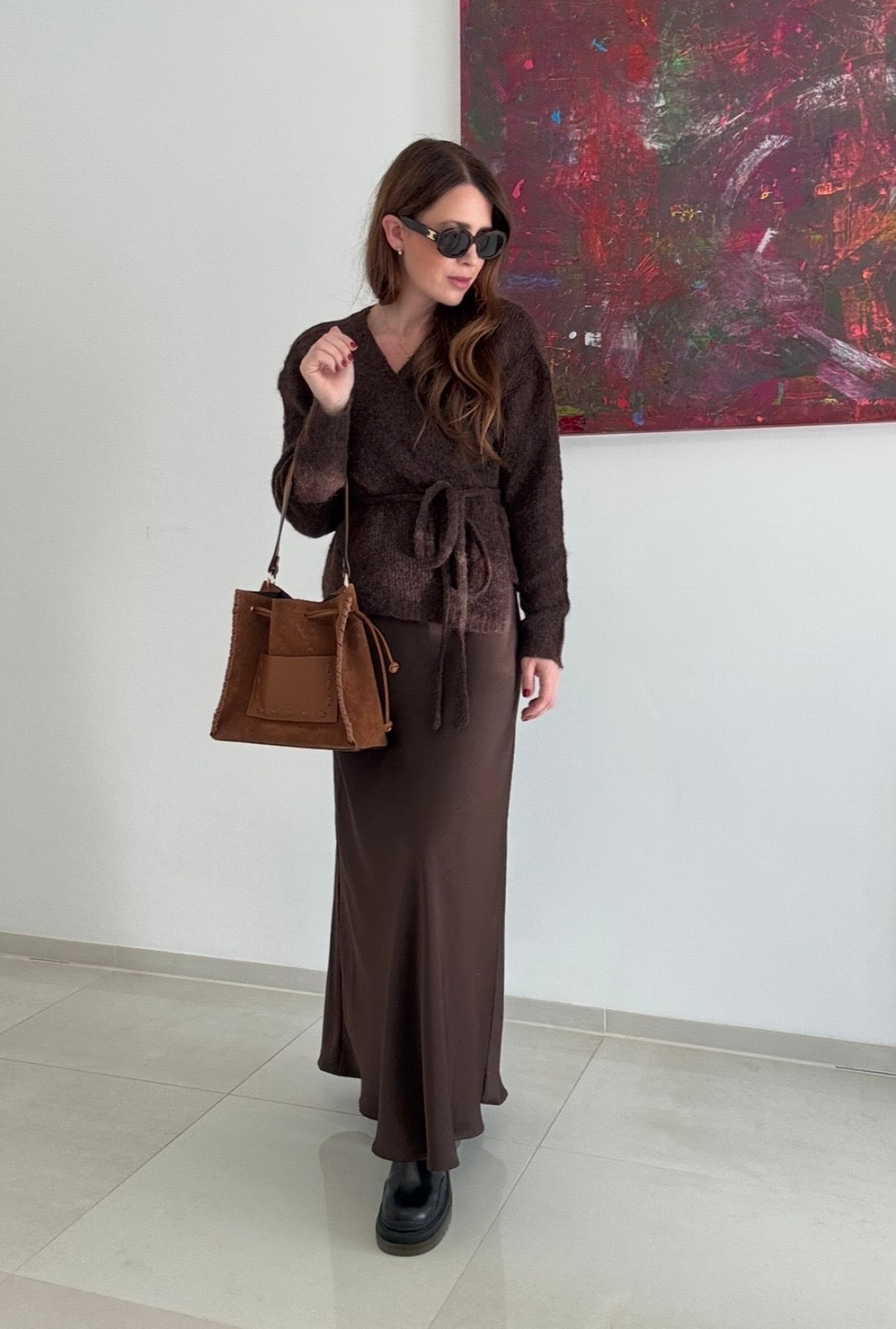 Dieser elegante Wickelcardigan in Schoko überzeugt mit seiner weichen, hochwertigen Materialmischung aus Wolle, Viskose und Polyamid. Dank der flexiblen Einheitsgröße von ca. 34-40 passt er sich komfortabel Ihrem Körper an und sorgt für ein angenehmes Tragegefühl. Perfekt für stilvolle Lagenlooks an kühlere Tage.