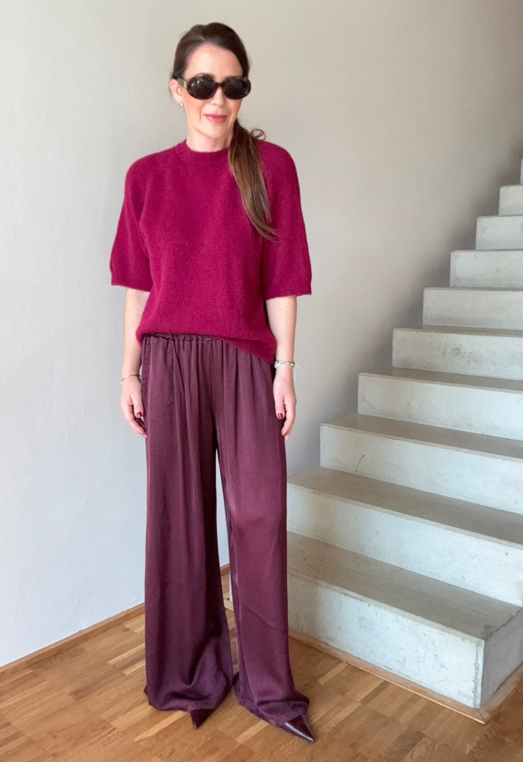 Dieses burgunderfarbene Baby-Alpaka Shirt vereint warme Eleganz mit höchstem Tragekomfort. Die edle Mischung aus 38% Acryl, 32% Polyamid und 30% Baby-Alpaka fühlt sich besonders weich auf der Haut an und eignet sich ideal für empfindliche Hauttypen. Die Einheitsgröße passt flexibel von Größe 34 bis 42 und sorgt so für eine perfekte Passform. Ein vielseitiges Basic, das Ihre Garderobe stilvoll ergänzt. Die Modellgröße auf dem Bild ist 164 cm und trägt Größe S.