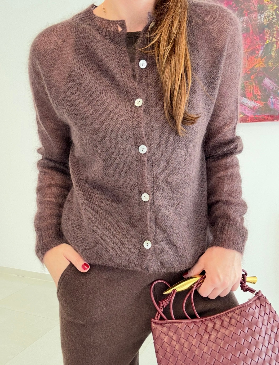 Dünne Mohair-Strickjacke - Braun