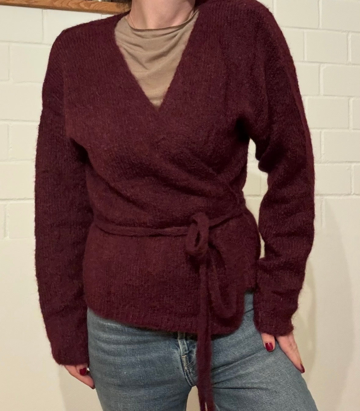 Dieser elegante Wickelcardigan in Burgunder überzeugt mit seiner weichen, hochwertigen Materialmischung aus Wolle, Viskose und Polyamid. Dank der flexiblen Einheitsgröße von ca. 34-40 passt er sich komfortabel Ihrem Körper an und sorgt für ein angenehmes Tragegefühl. Perfekt für stilvolle Lagenlooks an kühlere Tage.
