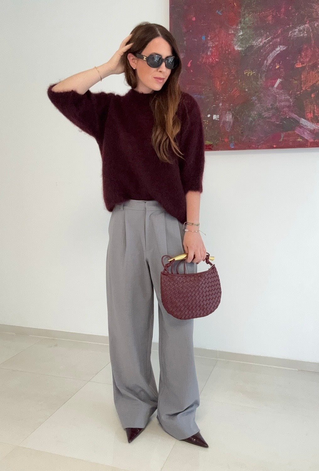 Diese graue Stoffhose überzeugt mit einer lässigen Passform und praktischen seitlichen Taschen, die Komfort und Funktionalität verbinden. Aus nachhaltigem, recyceltem Polyester (63%), Viskose (33%) und Elastan (4%) gefertigt, bietet sie flexible Bewegungsfreiheit und ein angenehm weiches Tragegefühl. Ideal für den Alltag, sorgt sie für einen entspannten und stilvollen Look. Das Model ist 164 cm groß und trägt Größe S.