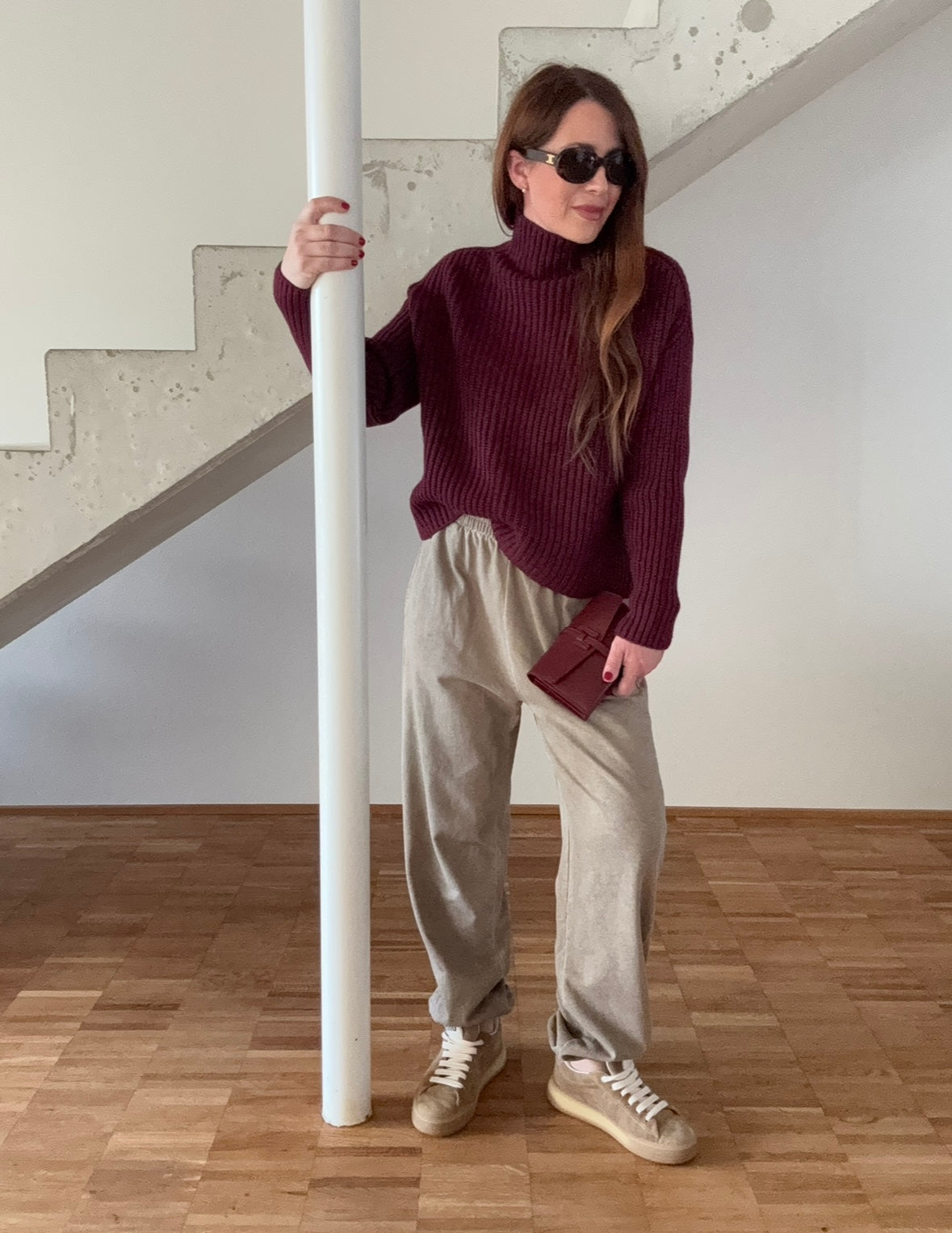 Dieser grob gestrickte Pullover in tollem Burgunder überzeugt durch seinen angenehmen Tragekomfort und die weiche Materialmischung aus Viskose, Polyester und Polyamid. Der gerade Schnitt mit Rollkragen und die leicht verkürzte Länge sorgen für einen modernen Look, der sich ideal von Größe 34 bis 40 anpasst. Mit einer Brustweite von 59-60 cm und einer Gesamtlänge von 49-50 cm ist dieser Pullover vielseitig kombinierbar und ein echter Hingucker für kühle Tage. Perfekt für stilbewusste Frauen, die Komfort und Design schätzen.