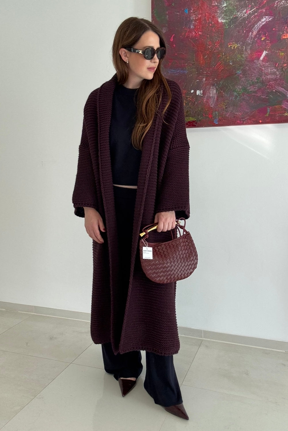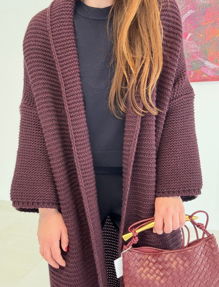 Diese grobe Oversize-Strickjacke in elegantem Burgunder ist ein echtes Must-Have für entspannte Looks. Der kuschelweiche Materialmix aus Acryl, Viskose, Lana und Alpaka sorgt für angenehmen Tragekomfort und wärmende Leichtigkeit. Dank der Einheitsgröße von etwa 34-42 passt sie sich vielseitig an und schenkt Ihnen einen lässigen, modernen Stil. Ideal für gemütliche Tage und stilvolle Casual-Outfits.
