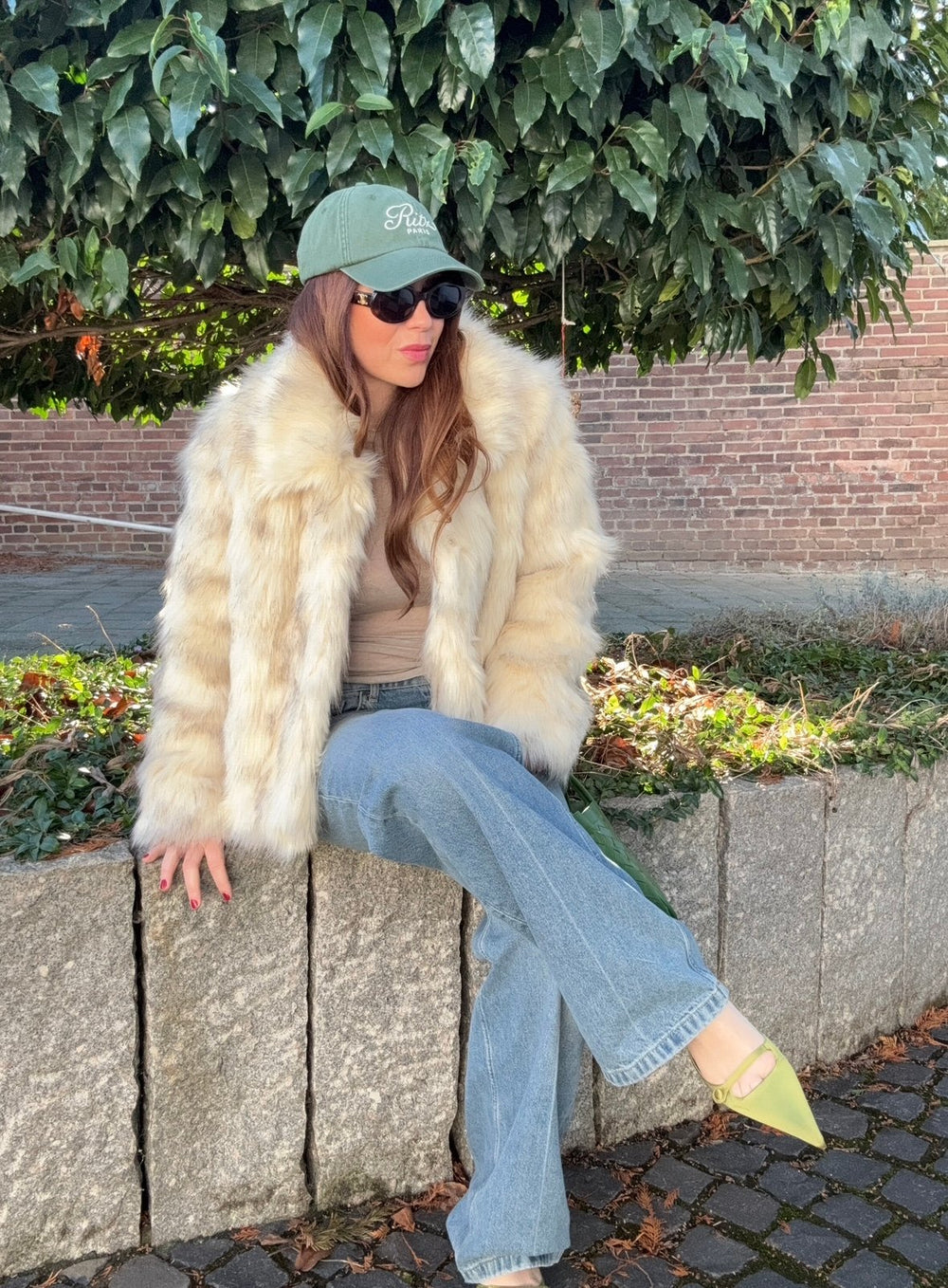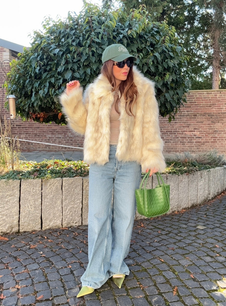 Kunstpelzjacke mit Kragen.- Material: 100 % Polyester- Wird vorne geschlossen- Seitentaschen- Kragen- Lockere Passform