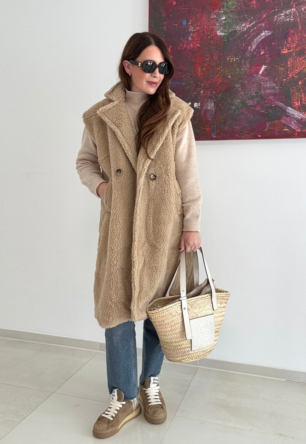 Diese beige Teddyweste aus weichem 100% Polyester ist der perfekte Begleiter für den Übergang. Sie lässt sich dank der zwei Knöpfe vorne bequem schließen und passt sich durch die Einheitsgröße etwa 34-40 (kleine 42) flexibel an. Ideal kombiniert mit einem dicken Pullover, sorgt sie für angenehme Wärme und stylischen Komfort an kühlen Tagen. Ein Must-have für vielseitige Looks in der kalten Jahreszeit.