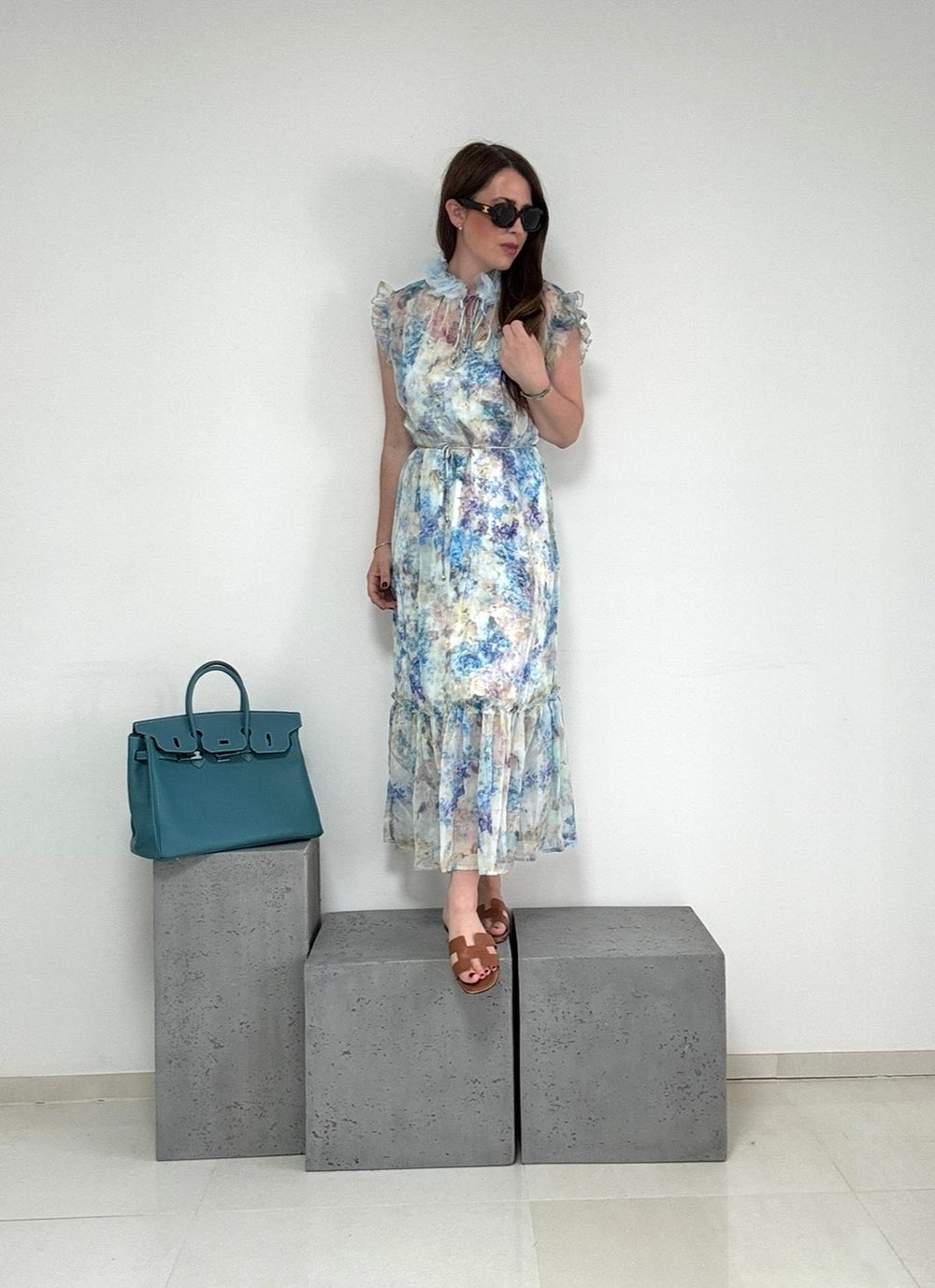 Midi-Kleid mir Print - Blau