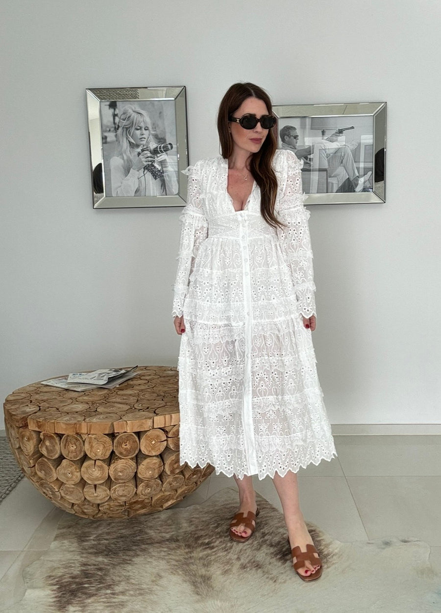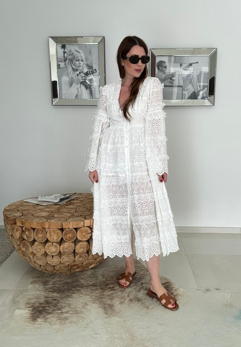 Ein tolles Kleid mit ausgestellten Ärmel. Das Kleid besitzt vorne eine Knopfleiste und ist ein absoluter Hingucker.