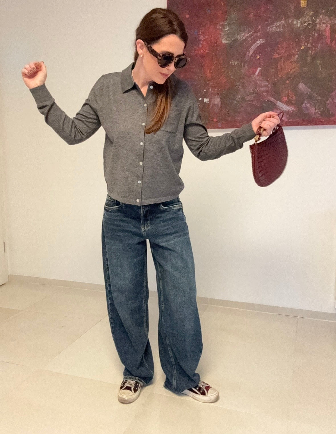 Dieser klassische Cardigan in tiefem Grau besticht durch seine angenehme Haptik und vielseitige Tragbarkeit. Die hochwertige Materialmischung aus 50% Viskose und 50% Polyamid sorgt für wunderbare Weichheit und gleichzeitig optimale Formstabilität. Die Einheitsgröße passt Konfektionsgröße 34-38, wobei unsere 164 cm große Trägerin die Größe S wählt. Ein zeitloser Begleiter für jeden Kleiderschrank – perfekt zu Basics oder als elegante Schicht über Blusen und Shirts.