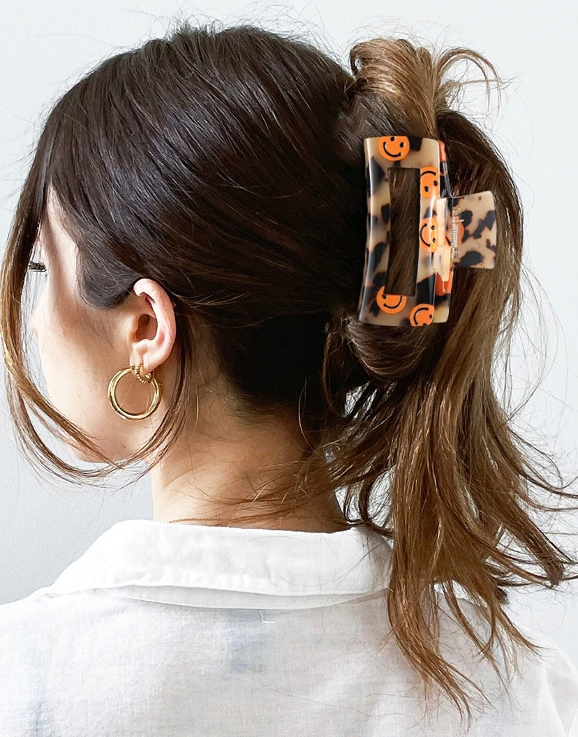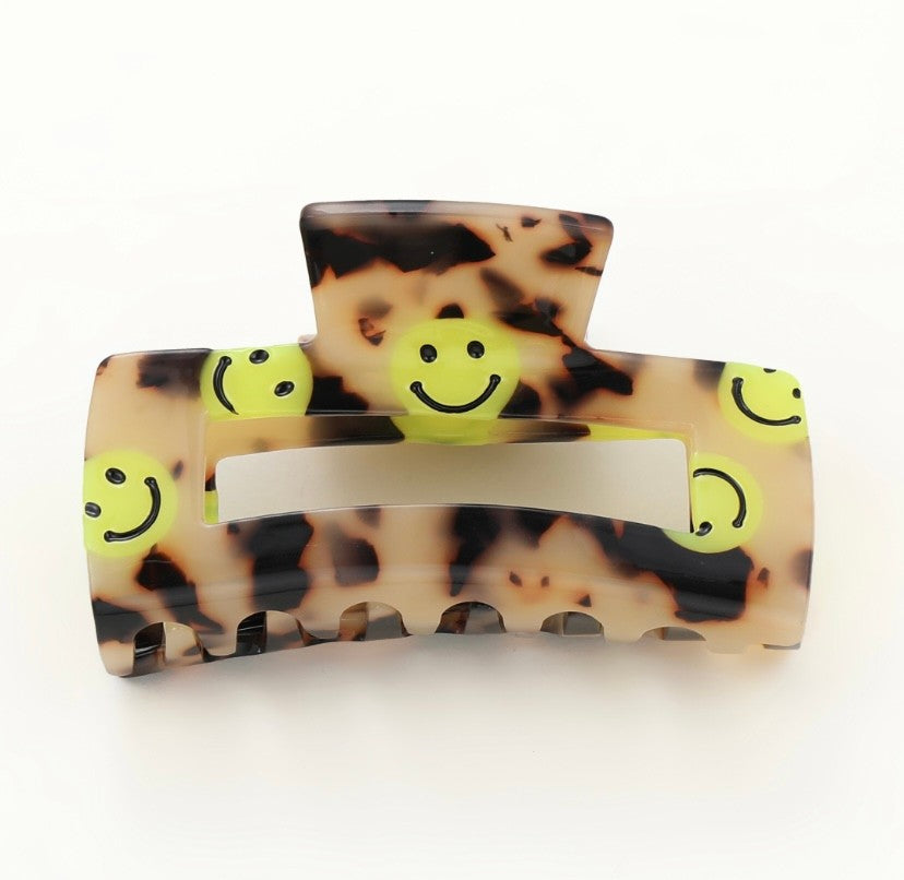 Mittelgroße Haarklammer Leopard mit Smiley - Gelb