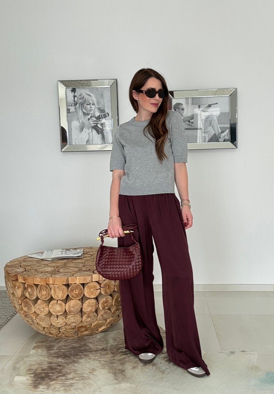 Dünner Strickpullover- Material: 70 % Viskose, 30 % Polyester- Rundhals- Normale Länge- Entspannte Passform- Streifen- Kurze Ärmel mit geripptem Saum- Gerippter Rand an Hals und SaumFarbe: Light Grey melange
