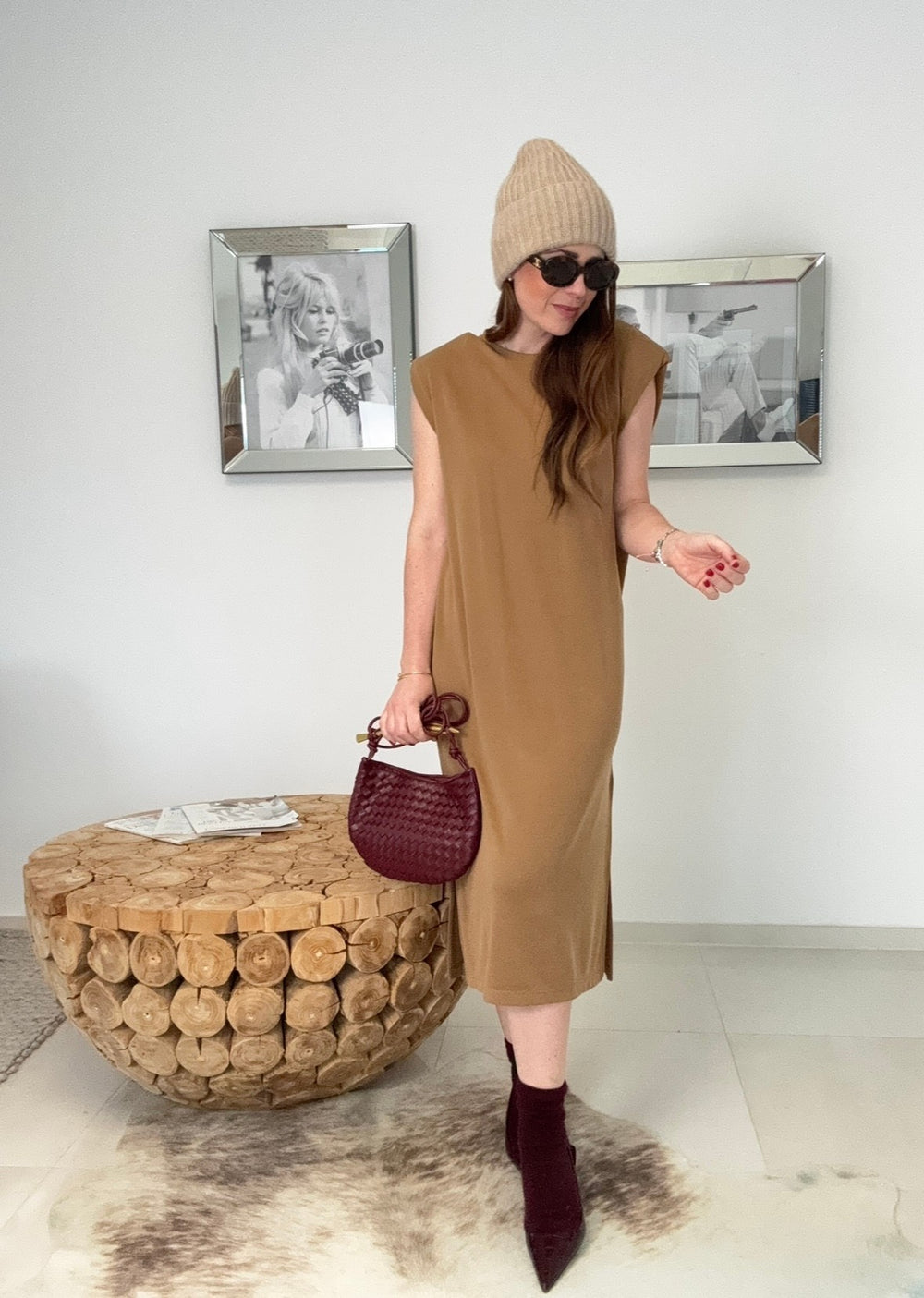 Kleid mit Schulterpolstern.- Material: 80 % TENCEL™ Modal, 20 % Polyester- Schulterpolster- Rundhals- Midi-Länge- Lockere Passform