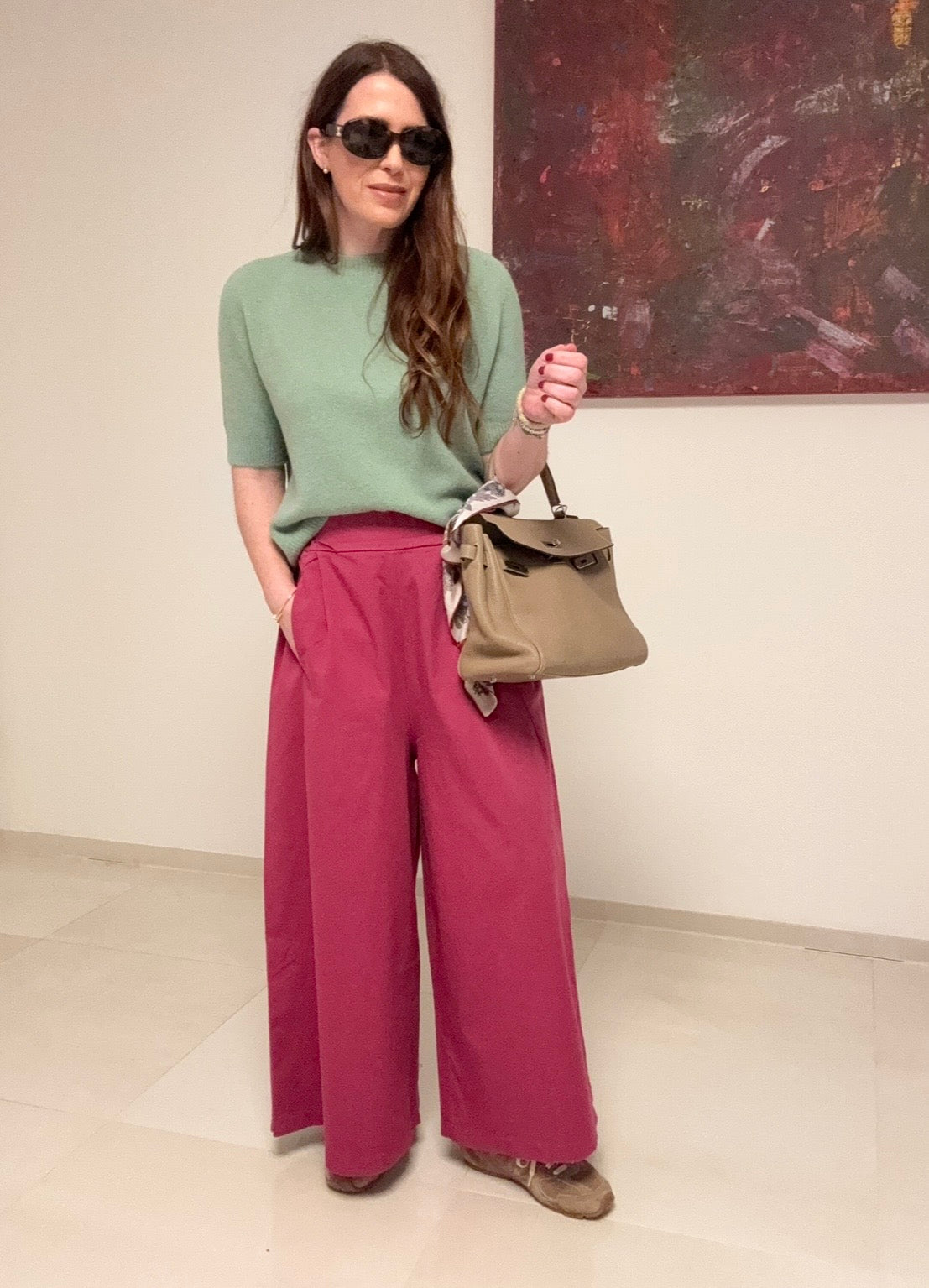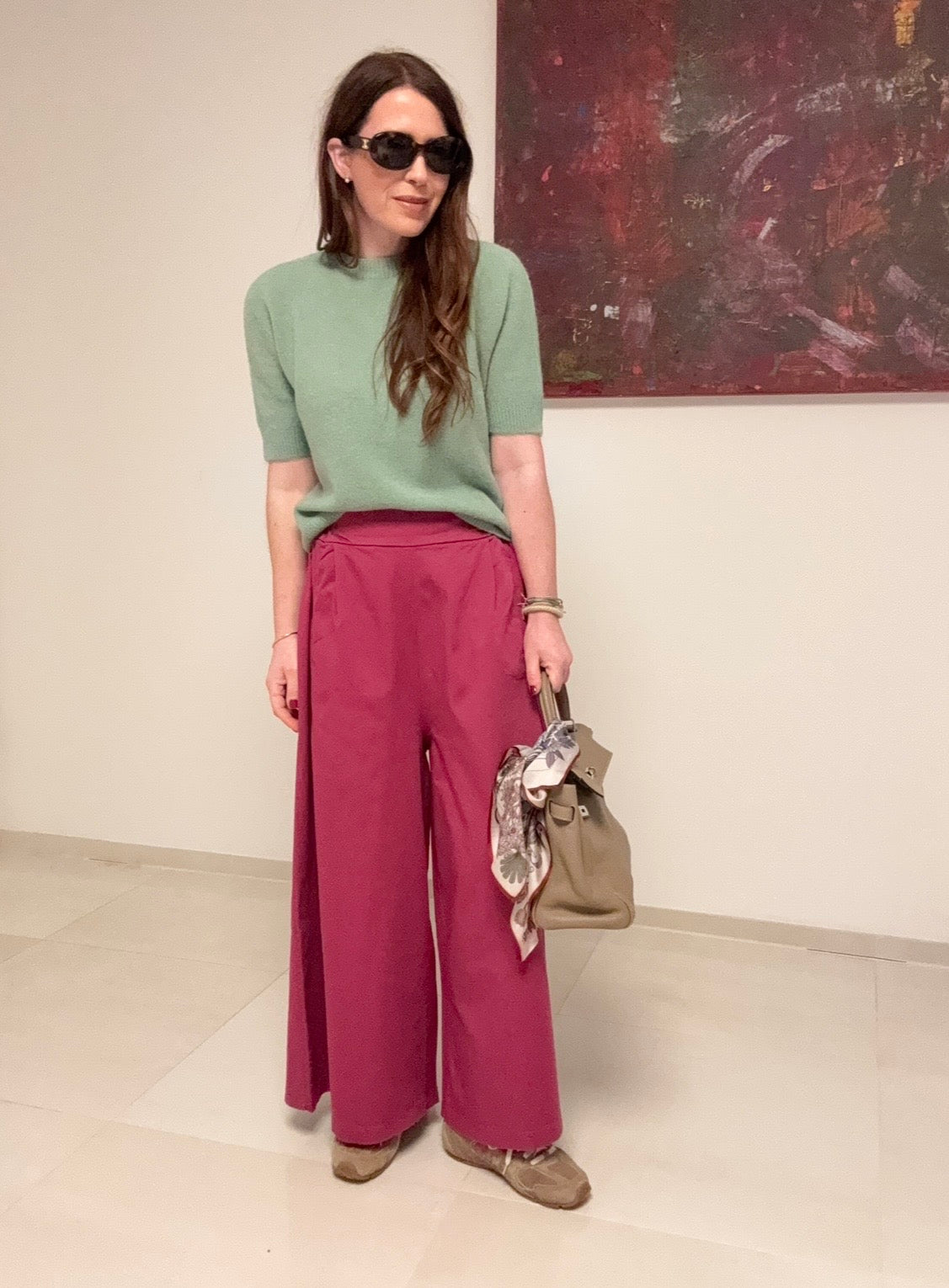 Bequeme weite Hose in Beere mit praktischen Seitentaschen und elastischem Bund für optimale Bewegungsfreiheit. Die Einheitsgröße passt Größen 36 bis 42 und bietet eine lockere, moderne Silhouette. Das Model mit 164 cm Körpergröße trägt Größe 36. Ideal für einen entspannten Alltag mit stilvollem Understatement.